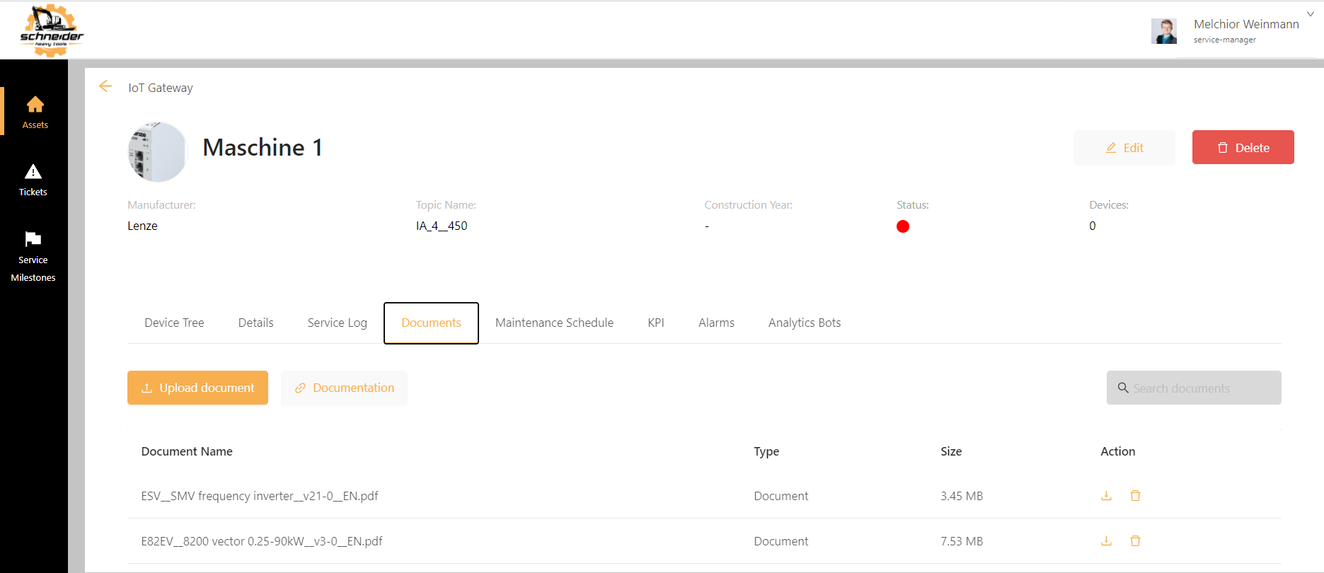 With the Document Management module, the user benefits from machine documentation that centralizes information in a paperless format and allows the documents to be uploaded and searched. Relevant information can be found easily with documents accessible anywhere and anytime. With stored documents available easily, issues can be resolved more quickly.